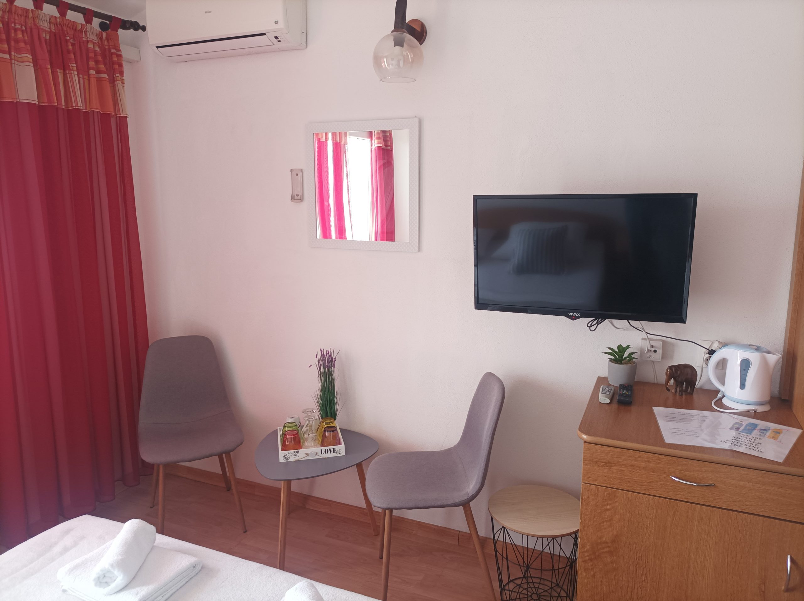 Sve smještajne jedinice opremljene su vlastitim kupaonicama, klima uređajem, TV-om, hladnjakom i kuhalom za vodu.